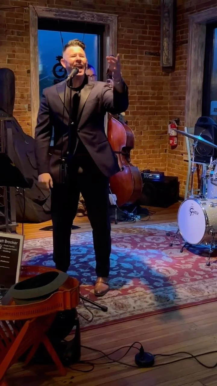 Matt Brooker is a jazz vocalist and live performer known for engaging audiences from the stage. His performances are designed to be experienced—connecting directly with listeners through dynamic programming, strong musical presence, and a clear artistic point of view.